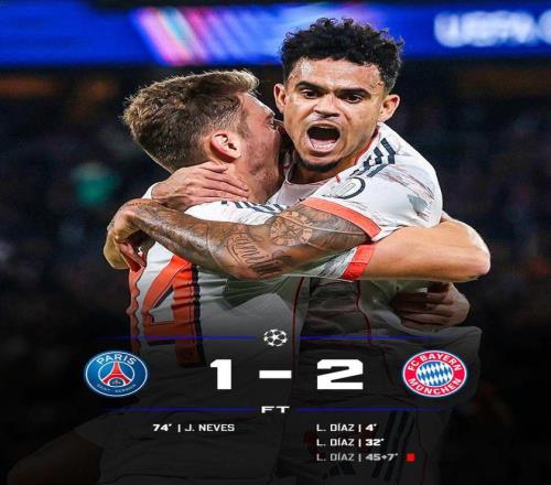 少打一人的的拜仁在下半场被迫收缩,而巴黎利用人数优势狂攻。直到第74分钟,李刚仁右路起球,若昂-内维斯扫射扳回一城,大巴黎1-2拜仁,最终比分也是定格在此。本场比赛过后,大巴黎3连胜终结,拜仁则是各项赛事豪取16连胜,强势领跑欧冠积分榜。