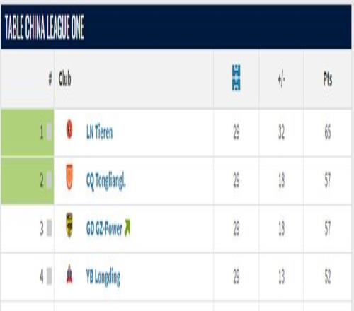 在即时积分榜上,广州豹以60分排名第二位,而重庆铜梁龙以58分排名第三位。