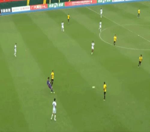 主场对阵南通支云,上半场补时阶段,侯煜突入禁区之后斜射稍稍偏出,错失破门良机。