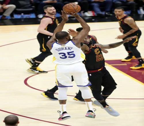 杜兰特贡献25分4篮板9助攻2盖帽,詹姆斯得到18分5助攻2抢断。